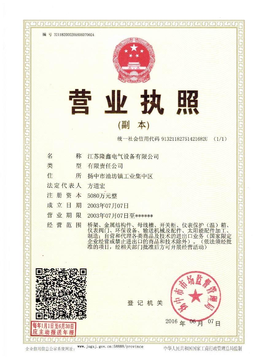 江蘇隆鑫電氣設(shè)備有限公司(原揚中市隆鑫電器設(shè)備有限公司)位于風景秀麗的江南古城 ---- 鎮(zhèn)江東部揚子江畔,水陸交通便利。 本公司是中石化網(wǎng)絡成員企業(yè),是揚中橋架企業(yè),工業(yè)管道閥門、儀表管配件、母線槽、匯線橋架、玻璃鋼制品的專業(yè)生產(chǎn)廠家。 我公司一貫以經(jīng)營以管理為保證、以科技進步為動力,使產(chǎn)品的市場占有率不斷提高,公司正持續(xù)、穩(wěn)步、健康地向前發(fā)展,秉循“創(chuàng)造完美、服務用戶、奉獻社會”的經(jīng)營觀念,本公司生產(chǎn)的儀表管件及閥門系列產(chǎn)品、母線槽、電纜橋架幾乎覆蓋全國31個省、市、自治區(qū)的化工、冶金、交通、輕...